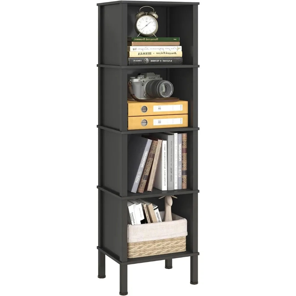 - Open Storage: The skinny display shelf with 4 open cube bookcase, convenient for you to display and store books or other decorative items, maximize the use of vertical space and small space in your home, make your room more neat and beautiful.