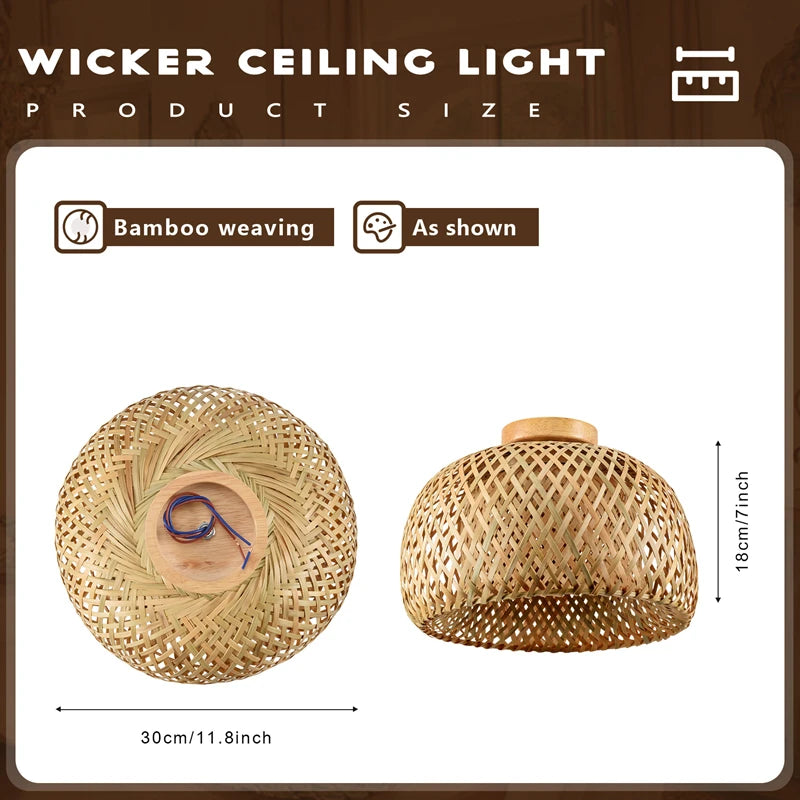 Bamboo Wicker Rattan Light Fixture Flush Mount Hanging Ceiling Lamp For Living Room Bedroom Dining Room