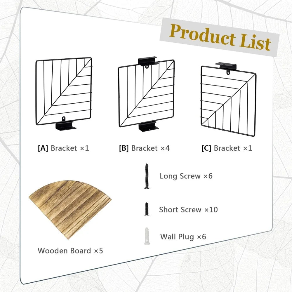 Corner Bookshelf, Corner Shelf Wall Mount of 5 Tier Rustic Wood Floating Shelves Wall Shelves