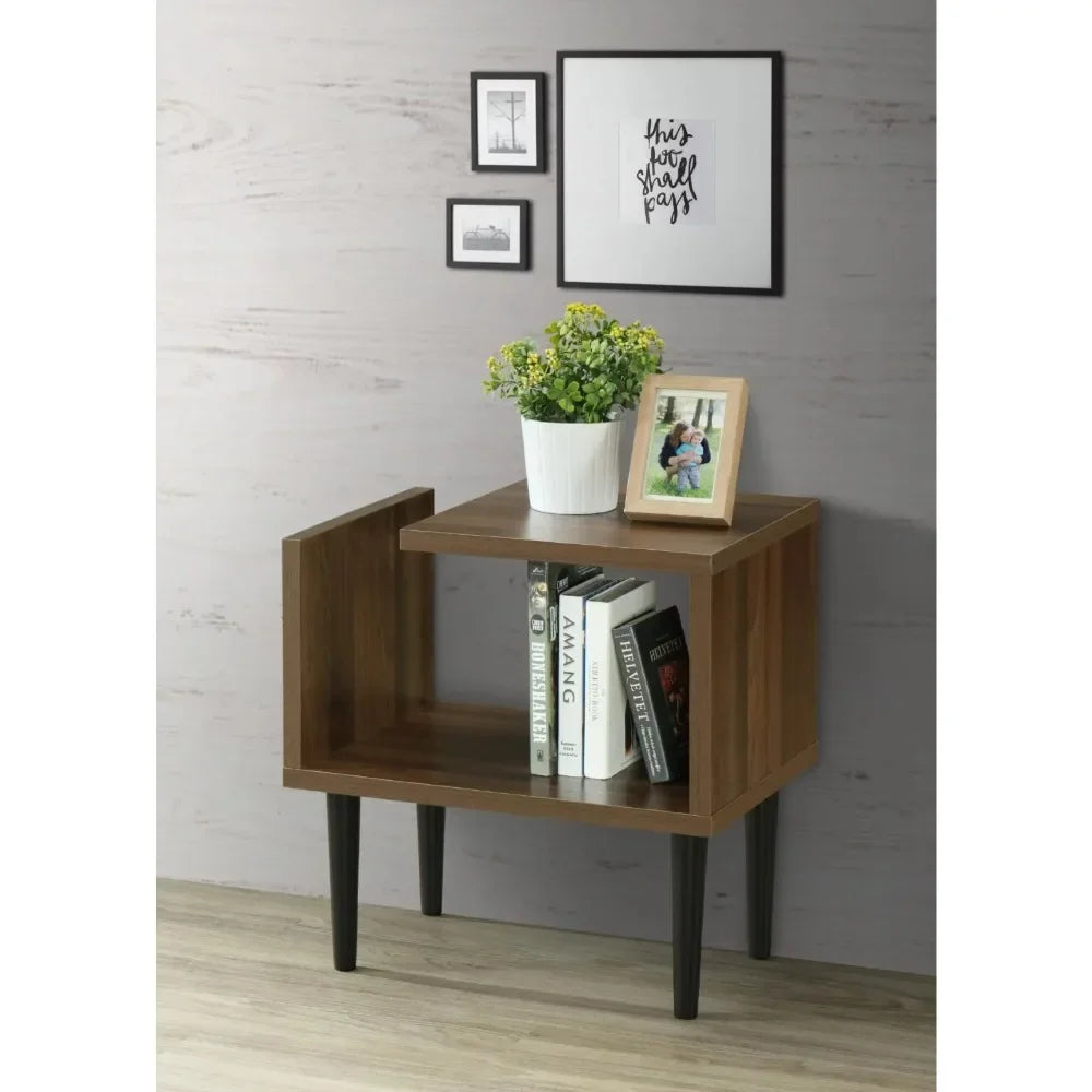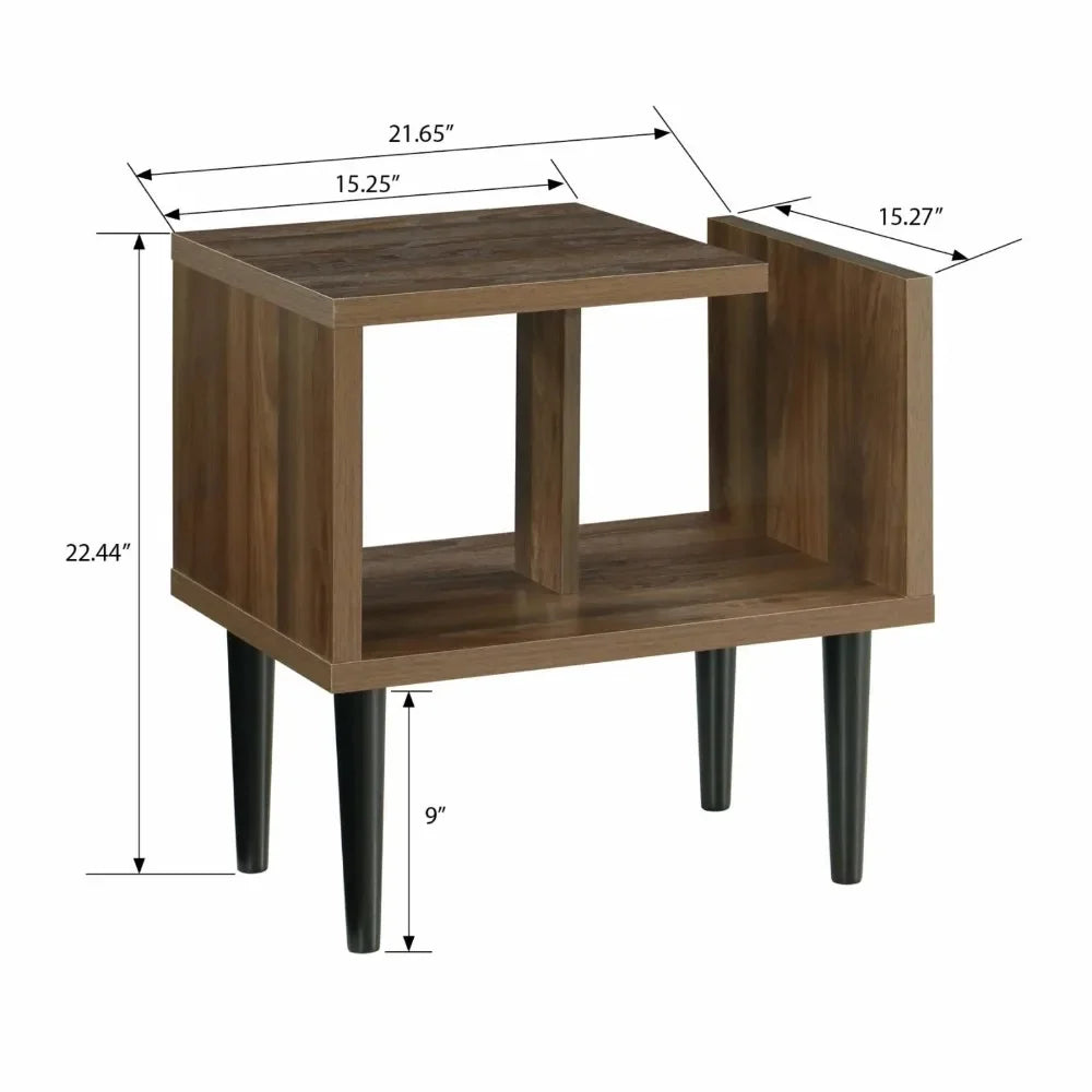 The Mid Century End Accent table evokes the ‘retro’ feel and function of authentic Mid Century Modern styling in a beautiful walnut finish and with attention to detail at every point. Iconic and unique abstract design creates interest as well as adds functionality. The black solid wood, lathe turned legs provide a nice accent to the Danish Walnut finish. One inch thick hollow core structure conveys a sense of sturdiness and substance.