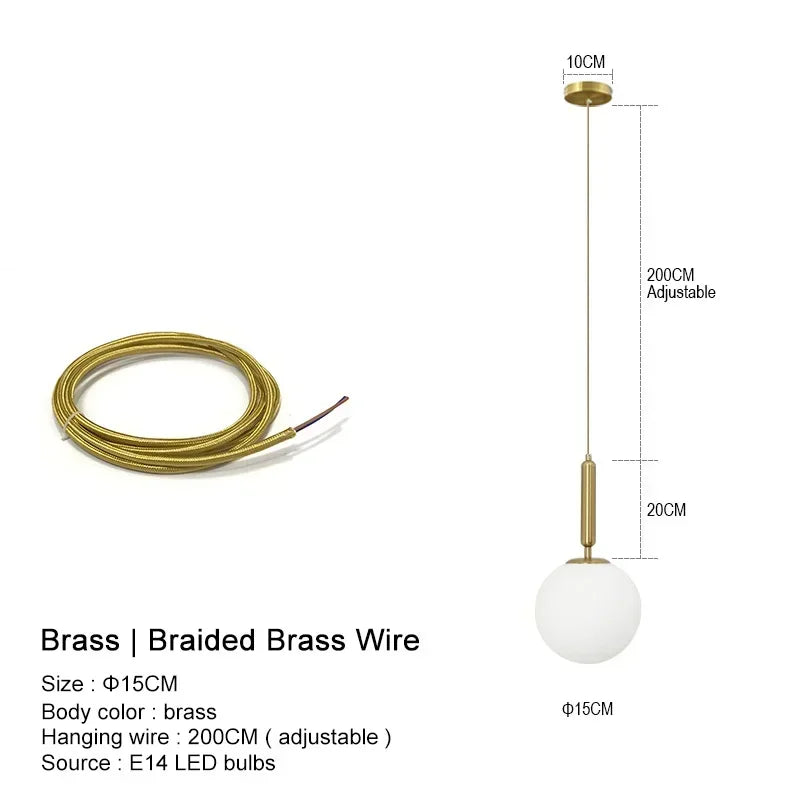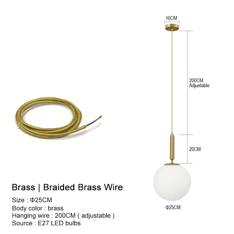 Aluminum material, high-quality electroplating process, braided wires, milky white frosted glass lampshade.