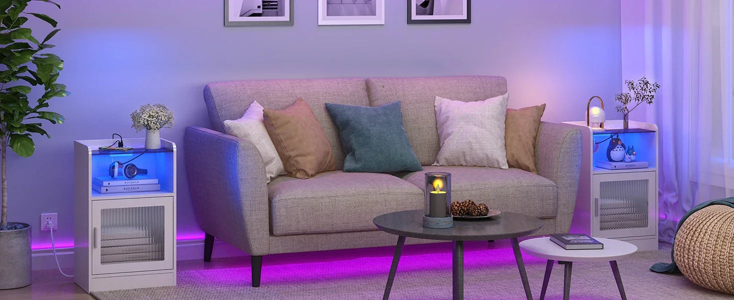 This Nightstand lights up your bedroom with adjustable RGB color LED light. Equiped with a charging station, it is convenient to charge your devices while working or playing with mobile phone. Open tabletop, top shelf and bottom storage cabinet is perfect for bedside storage