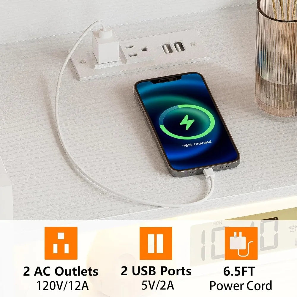 Nightstand , Bedside Table with Charging Station, Modern Night Stand,Wood Boho Side Table,Mid Century Small End Table with Drawer for Bedroom, Living Room